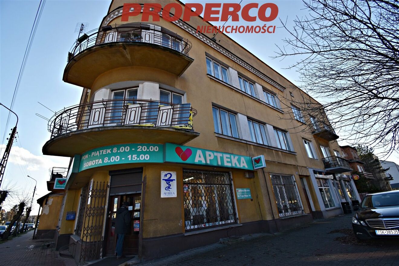 Na sprzedaż kamienica o pow. całkowitej ok. 1420 m2 , pow. użytkowej ok. 840 m 2 zlokalizowana w Skarżysku-Kamiennej, przy ul. 1 Maja. Kamienica oddana do użytku w 1937 roku, 4-kondygnacyjna, z pełnym podpiwniczeniem.Na parterze mieszczą się 2 lokale usługowe o pow. ok. 140 m2 i 80 m2 (obecnie apteka i gastronomia) generujące systematycznie dochód. Na wyższych kondygnacjach (I i II piętro) znajduje się łącznie 8 mieszkań po ok. 70 m2 każde. 7 z nich jest aktualnie wynajmowanych lokatorom na podstawie umów najmu.