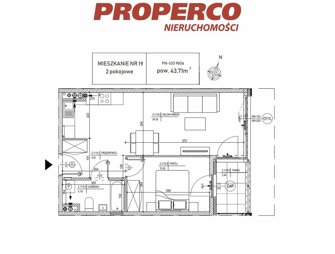 - salon z aneksem: 24,32m2,
