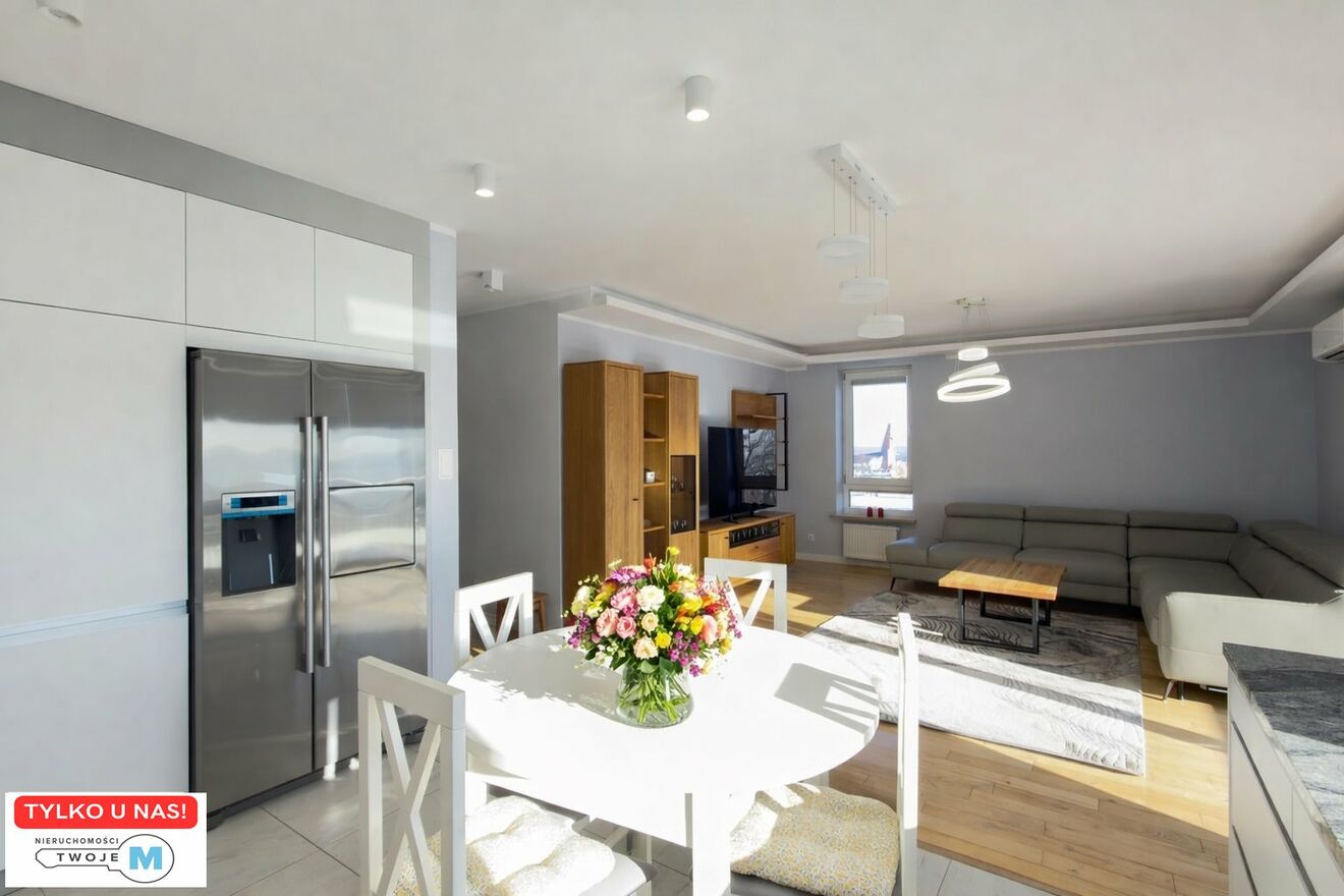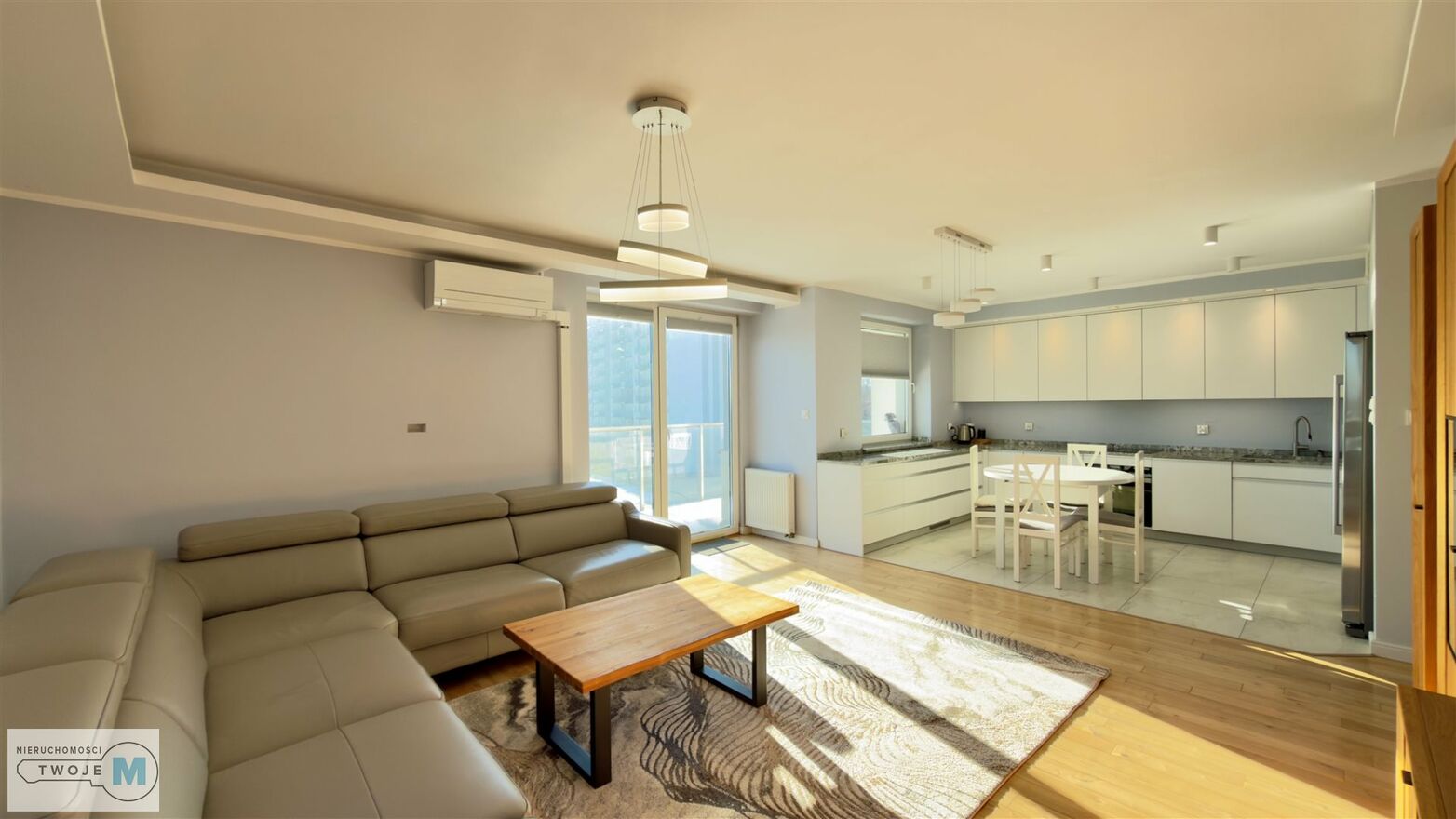 Mieszkanie zachwyca przestronnym salonem z aneksem kuchennym, który stanowi serce domu i naturalnie łączy strefę wypoczynkową z jadalnianą. Z salonu prowadzi wyjście na duży, słoneczny taras - idealne miejsce na poranną kawę lub relaks po pracy.