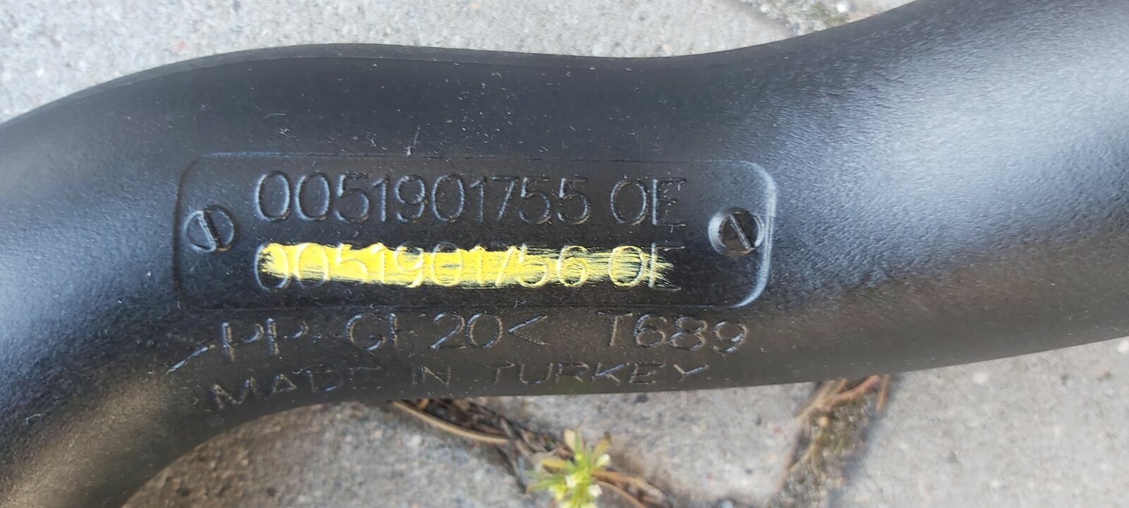 Rura wąż Intercoolera FIAT OPEL 0051901755 OE 0051901756 OE