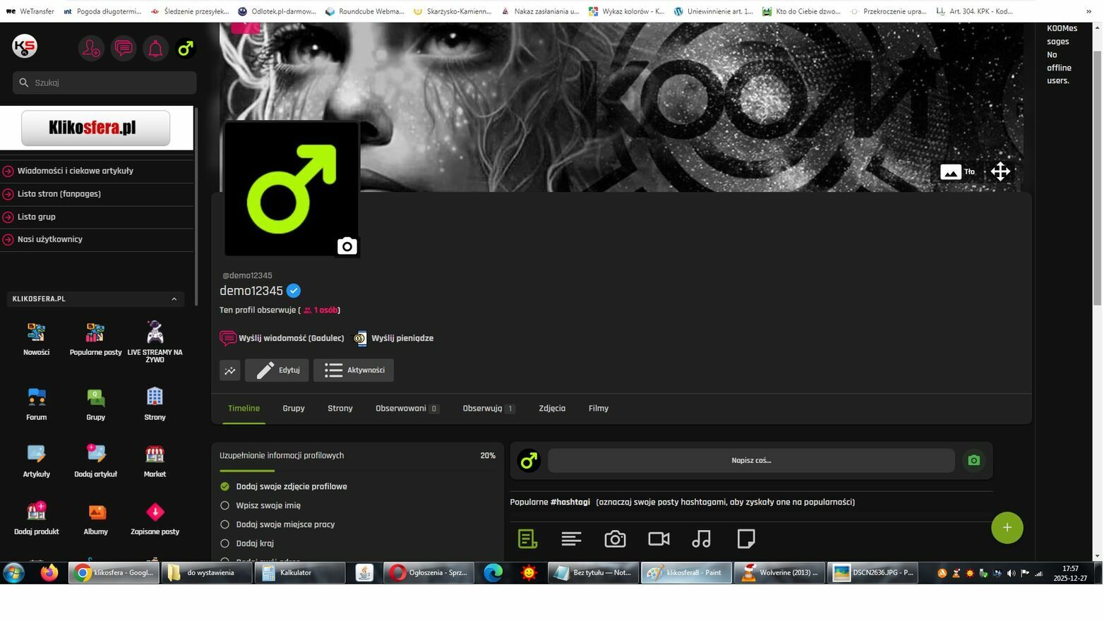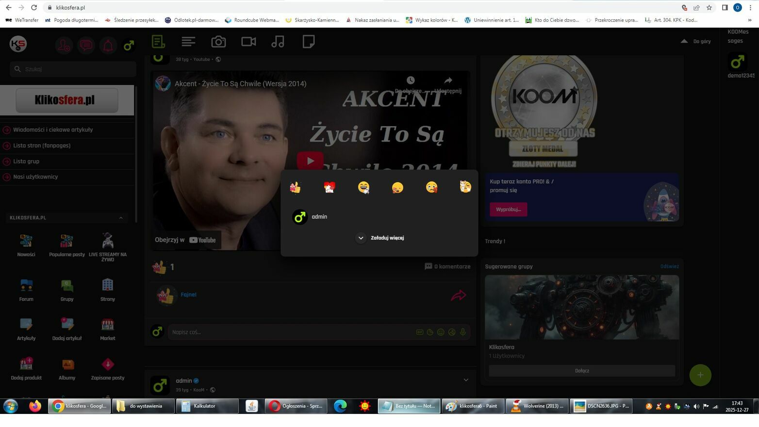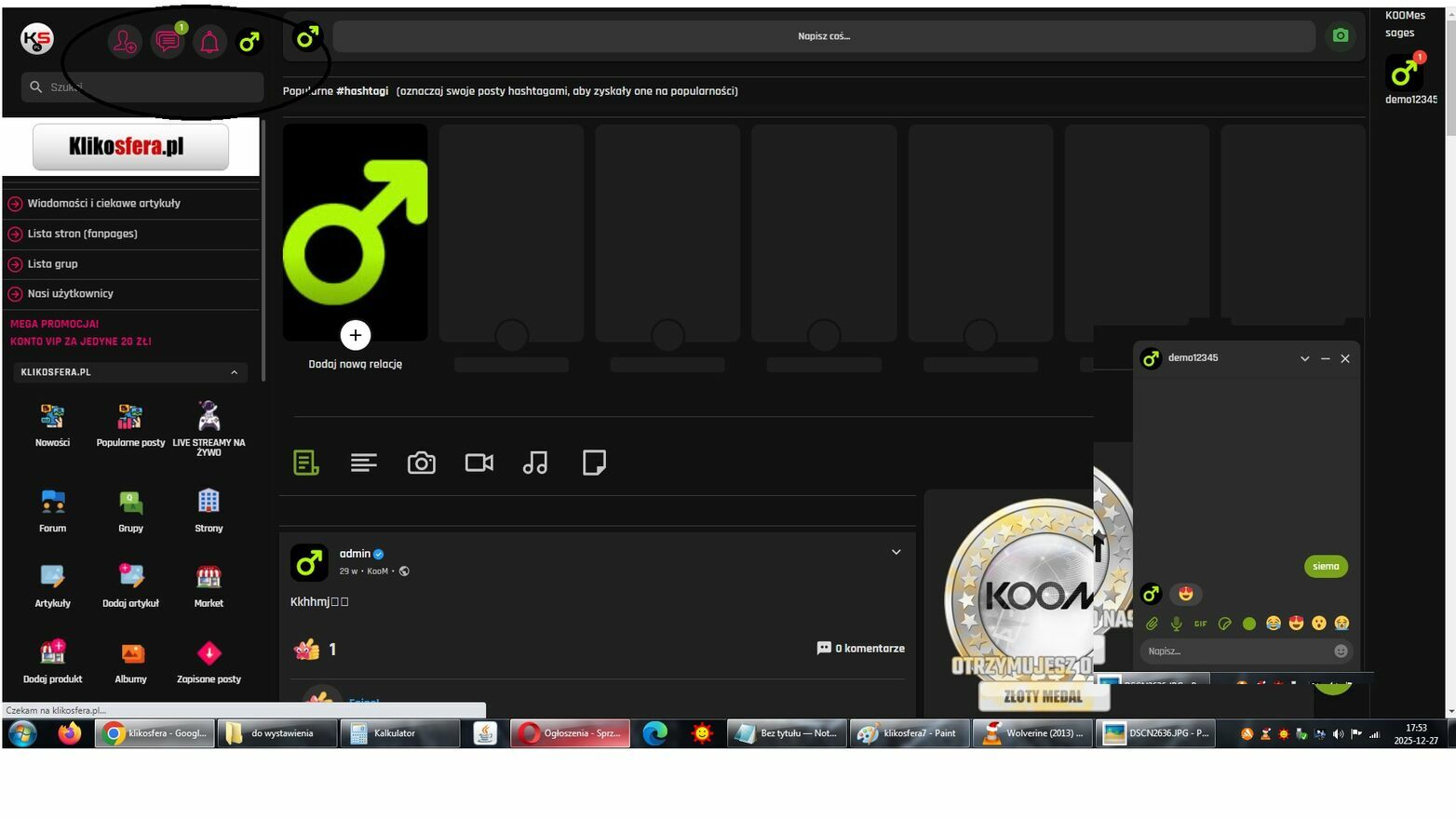 Sprzedam serwis internetowy działający pod adresem domeny: www.klikosfera.plSerwis jest oparty na działaniu takim jakie posiada serwis facebook.pl